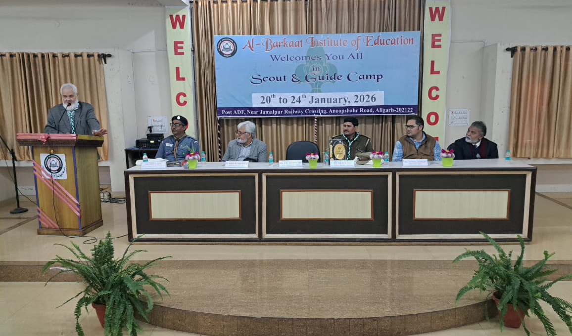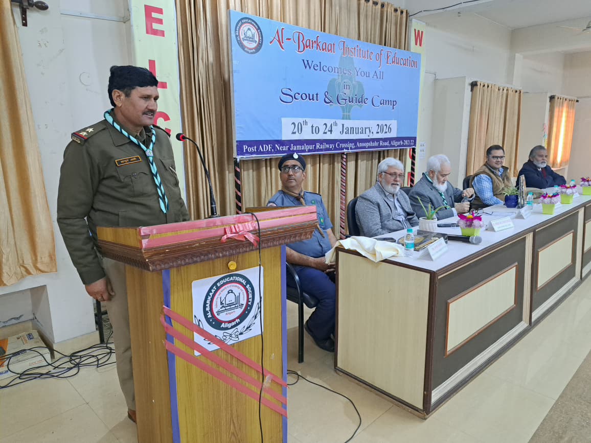 आज अल-बरक़ात इंस्टिट्यूट ऑफ़ एजुकेशन के बी.एड. विभाग में आयोजित स्काउट एवं गाइड प्रशिक्षण कार्यक्रम का अंतिम दिवस सफलतापूर्वक एवं गरिमामय रूप से संपन्न हुआ। इस दिवस का मुख्य उद्देश्य छात्र-छात्राओं में अर्जित व्यावहारिक कौशलों का प्रदर्शन, सहयोग की भावना को सुदृढ़ करना तथा सृजनात्मक अभिव्यक्ति को प्रोत्साहित करना रहा।