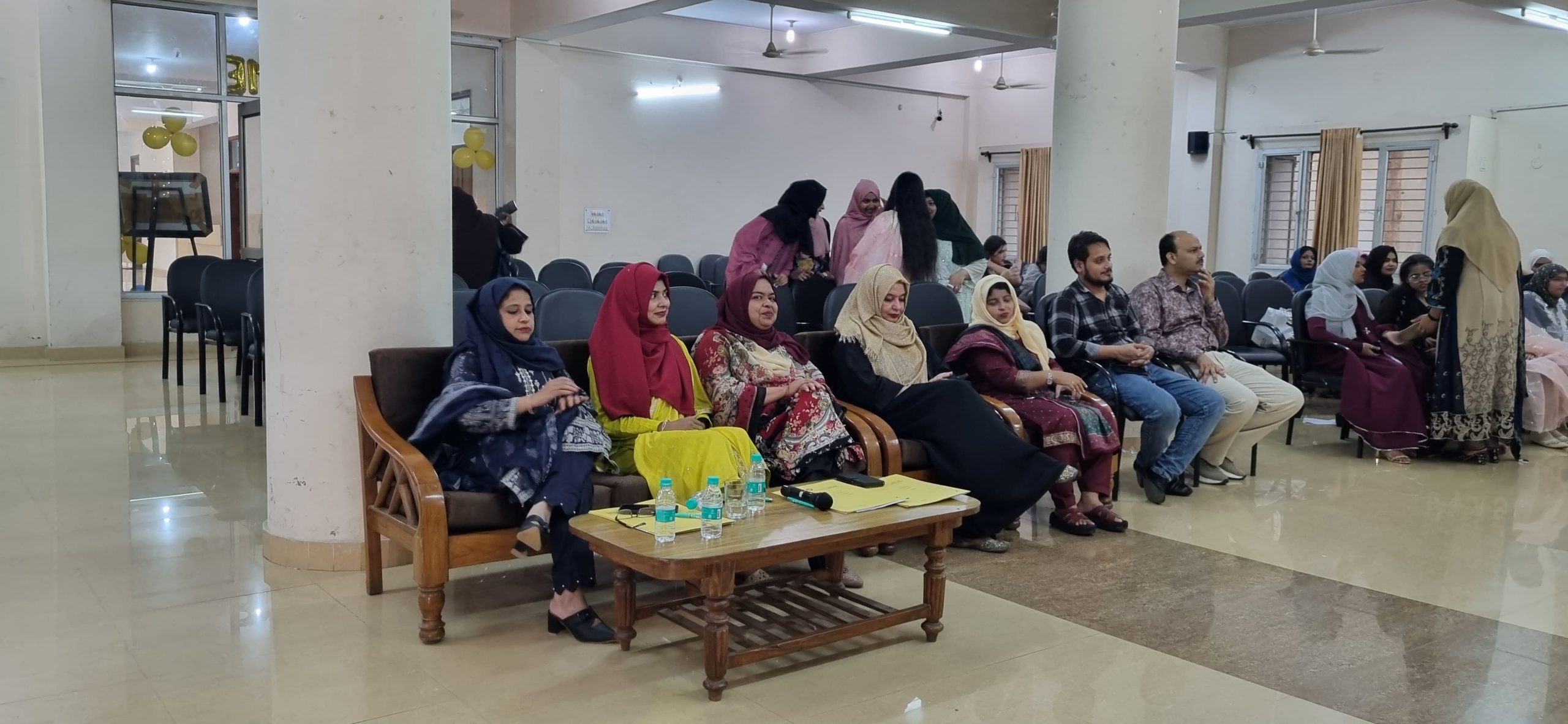 The event was anchored by Saira, Shumaila, Ruqaiya, and Afreen. It began with a Qirat presented by Alisha Anjum, followed by a welcome speech from Amreen Sultana. A skit performed by Yusra Khanam and Amreen Sultana showcased a live reporting of the program. Next, an introduction round was held for the juniors.