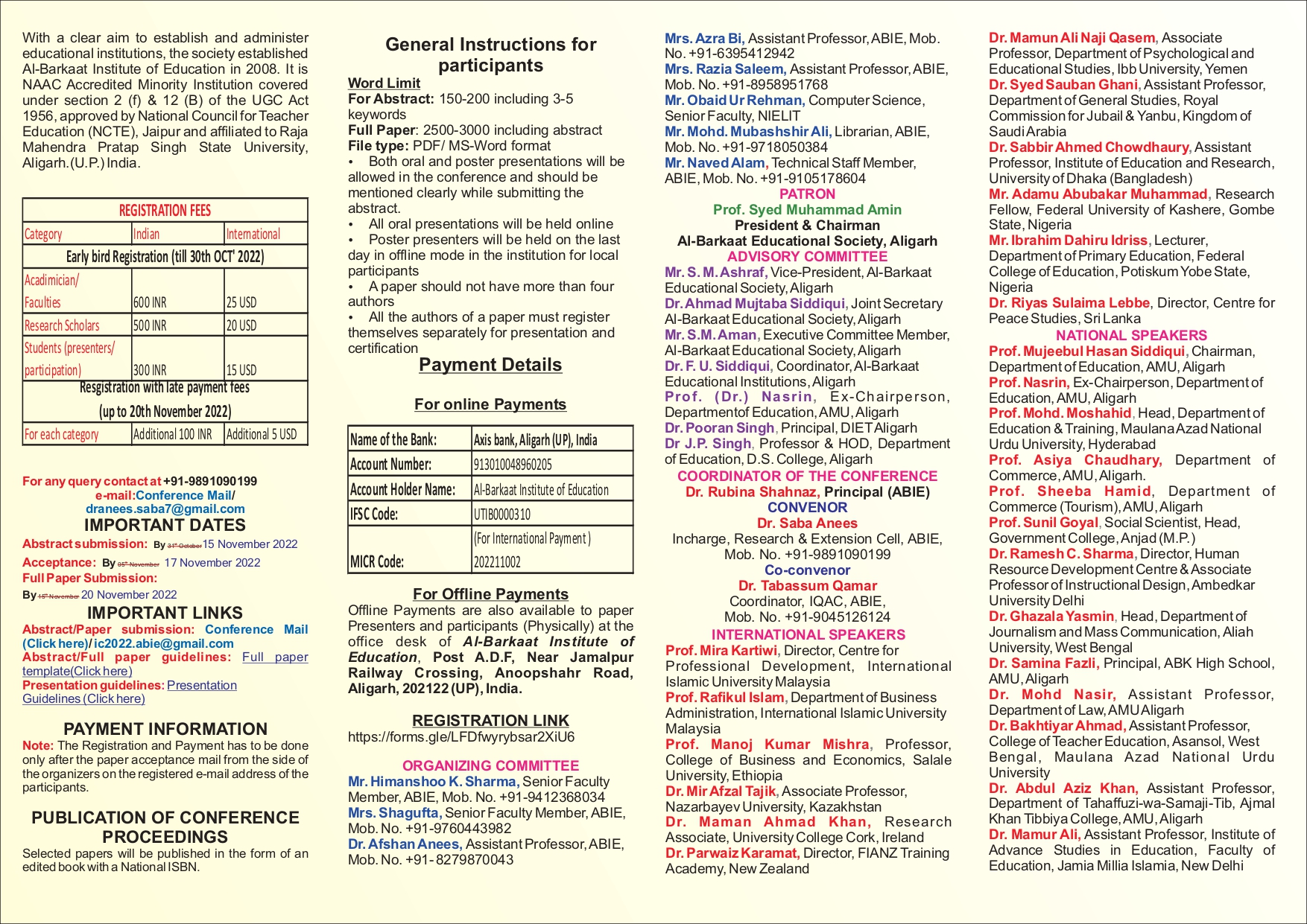 Al-Barkaat Institute of Education organized a 3 Days Multidisciplinary International Conference on Blended Mode from 24th November 2022- 26th November 2022 on the theme ‘Achieving SDG 8 through Education 4.0: Across the Globe and Beyond the Disciplines’.