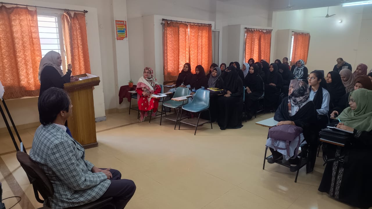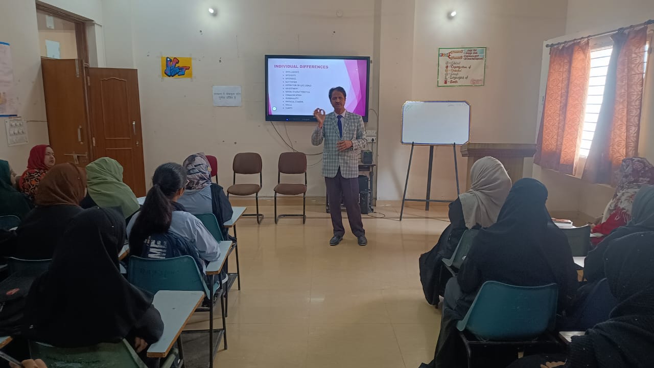 The lecture was started by Dr Afshan Anees (Assistant Professor & In-charge Placement Cell) by the formal welcome of Resource person Prof. Mohd Abid Siddiqui, Department of Education, AMU Aligarh. Dr Rubina Shahnaz (Principal ABIE) felicitated the guest by giving the sapling.